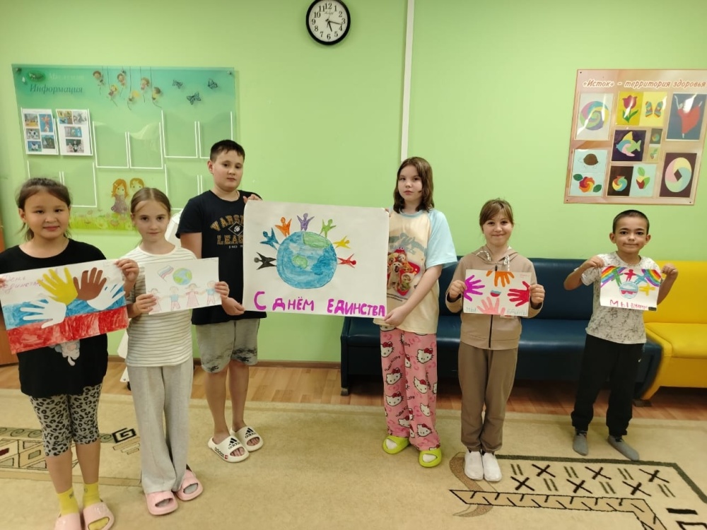 Сегодня Россия отмечает День народного единства. Этот день символизирует связь поколений и объединяет людей в их любви к Родине и друг к другу. В преддверии праздника в нашем санатории прошла тематическая неделя, посвященная Дню народного единства. Ребята узнали, как наши предки объединились ради свободы Родины. Они изучили историю праздника, величие России, ее символы и богатства. Дети познакомились с народами страны, их традициями, костюмами и играми. Они закрепили полученные знания через творчество: рисовали и создавали коллективные работы.
